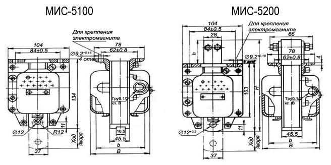 При монтаже электромагнит МИС 5100, МИС 5200 располагают вертикально. Перед включением следует проверить наличие подвижного якоря, поскольку, если подать напряжение в его отсутствие, катушка может перегореть.