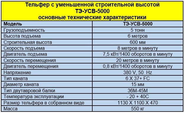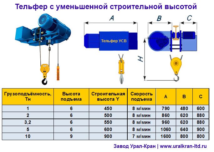 Сейчас стандартом является электрический тельфер УСВ, позволяющий выполнять подъем крупногабаритных грузов с минимальными затратами сил и времени. Тельфер УСВ с уменьшенной высотой — его разновидность, предназначенная для монтажа в условиях ограничений по габаритам.